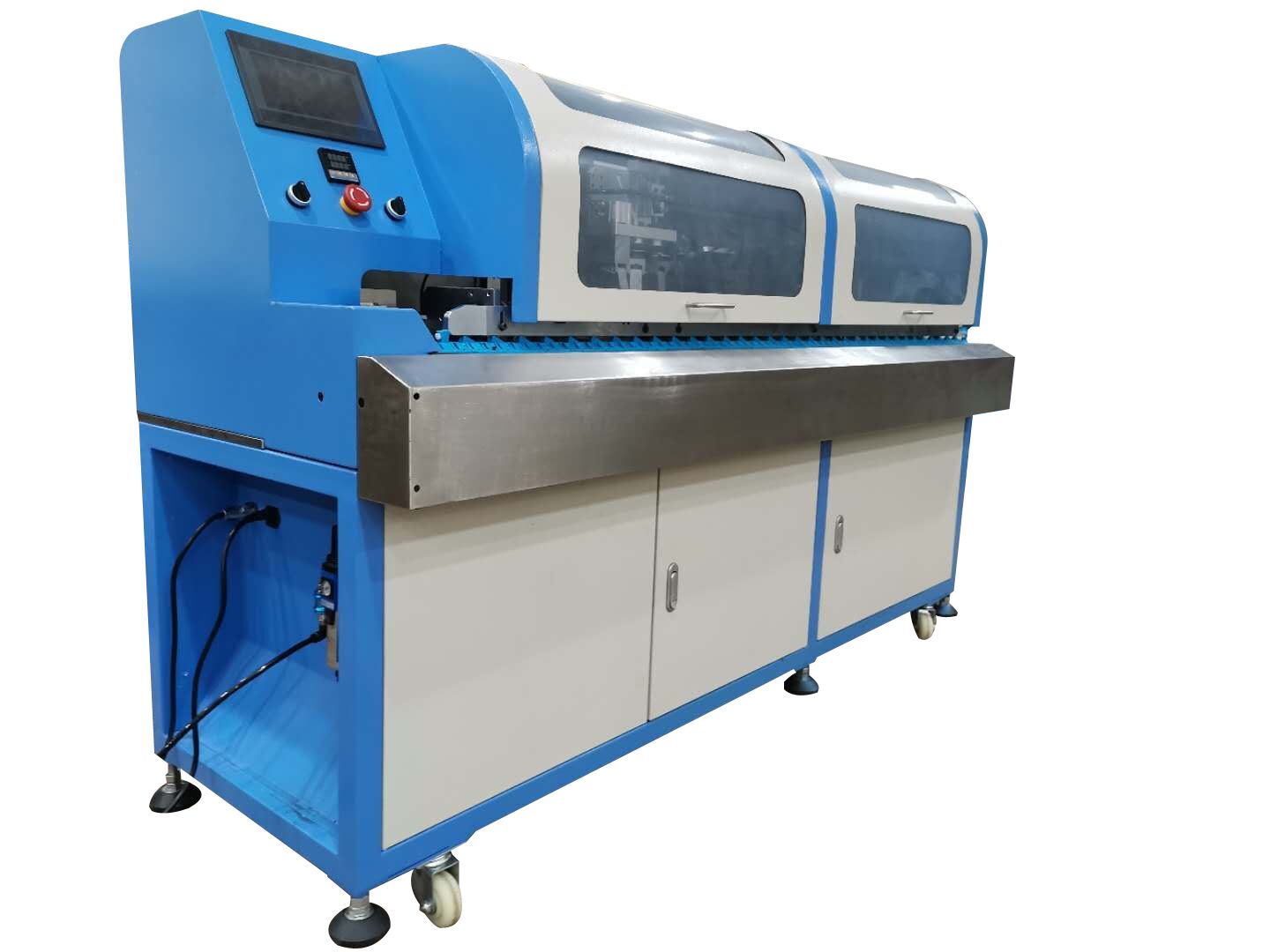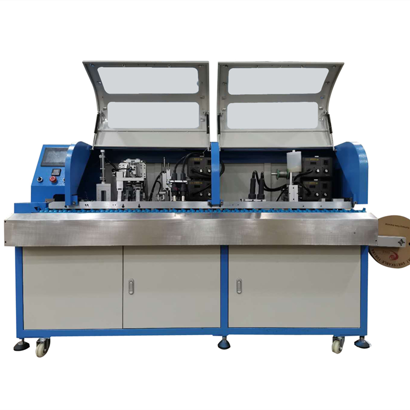 设备可实现自动剥外被、刷屏蔽线、扭屏蔽线、穿小套管(屏蔽线)、烘套管、去芯线、穿大套管、浸锡